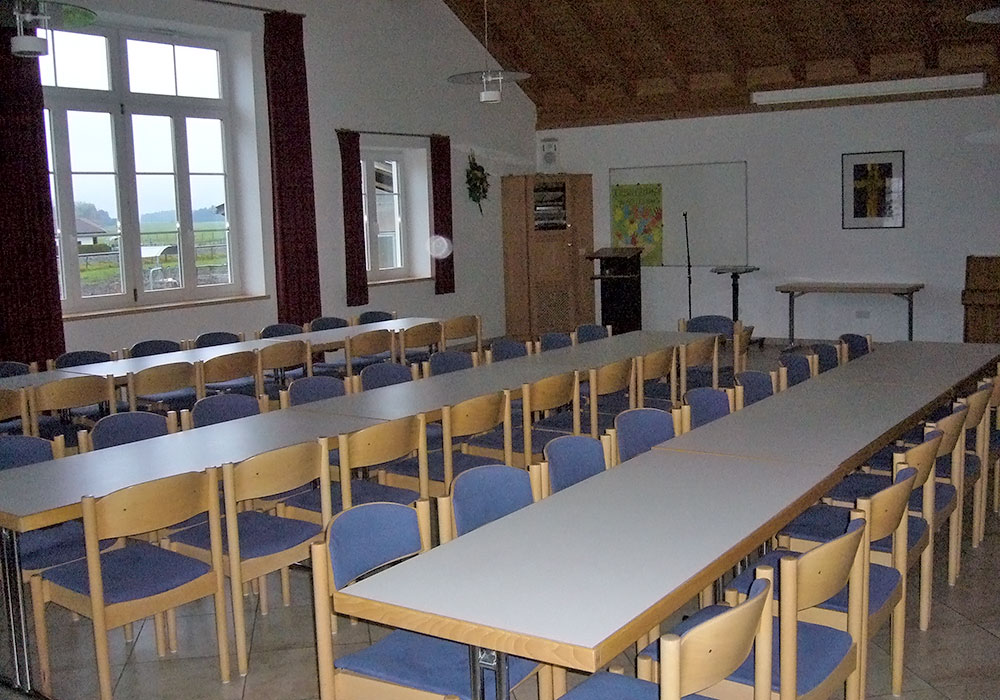 Erdgeschoss: großer Pfarrsaal, geräumige Küche, WC-Anlagen mit extra Behindertentoilette